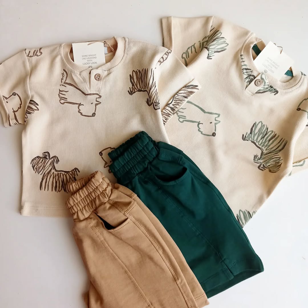 تیشرت شلوارک با تیشرت کبریتی ریز وشلوارک دورس نخ